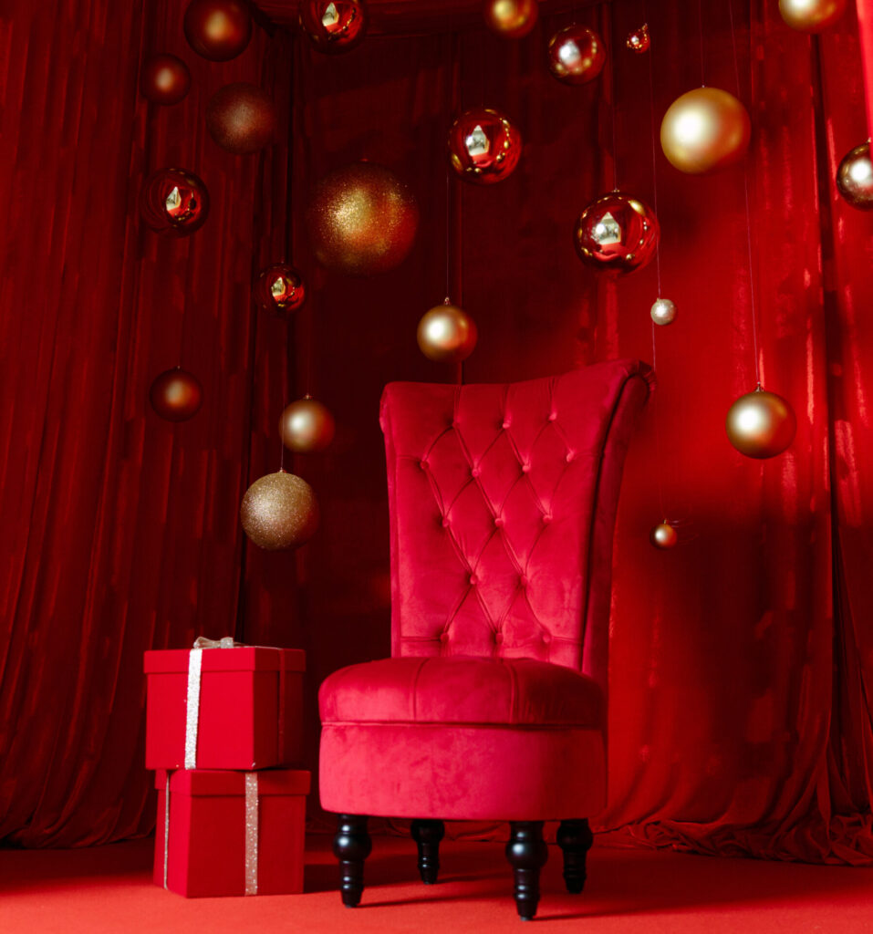 Drenched in rich red velvet and accented with touches of glimmering gold, it’s where elegance meets festive grandeur.